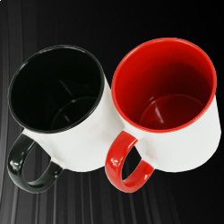 CANECAS DE CERÂMICA 325ML PRETA COM JANELA BRANCA